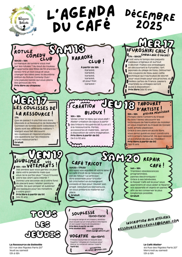 Le Café de la Ressource sera fermée du 22 décembre au 6 janvier inclus !